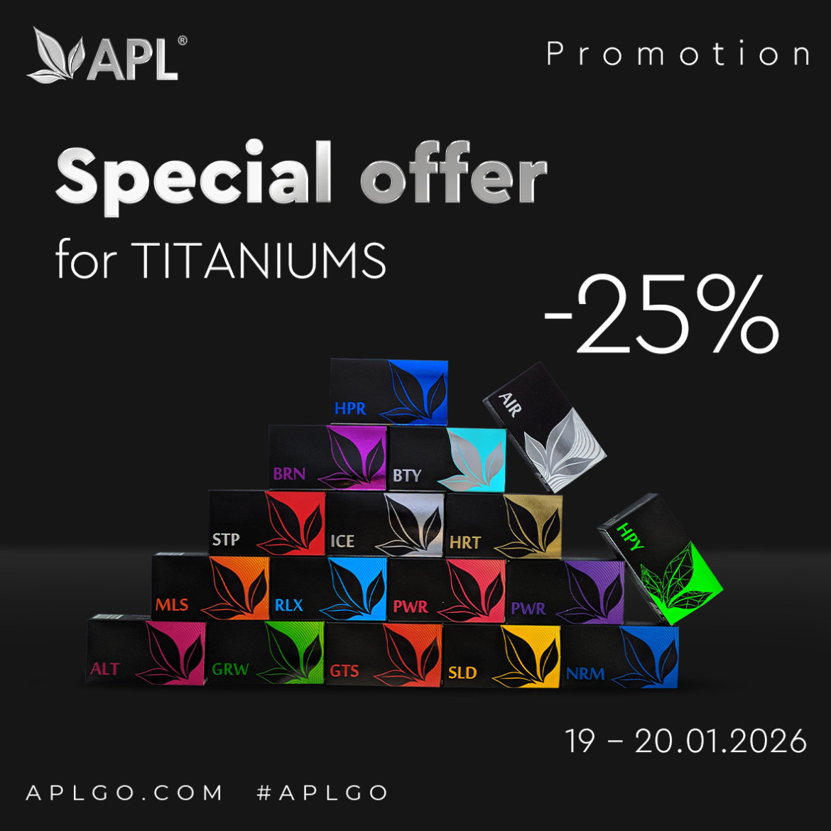 (!) You can check if the promo is available in a specific country when placing an order in your backoffice at https://backoffice.aplgo.com/
